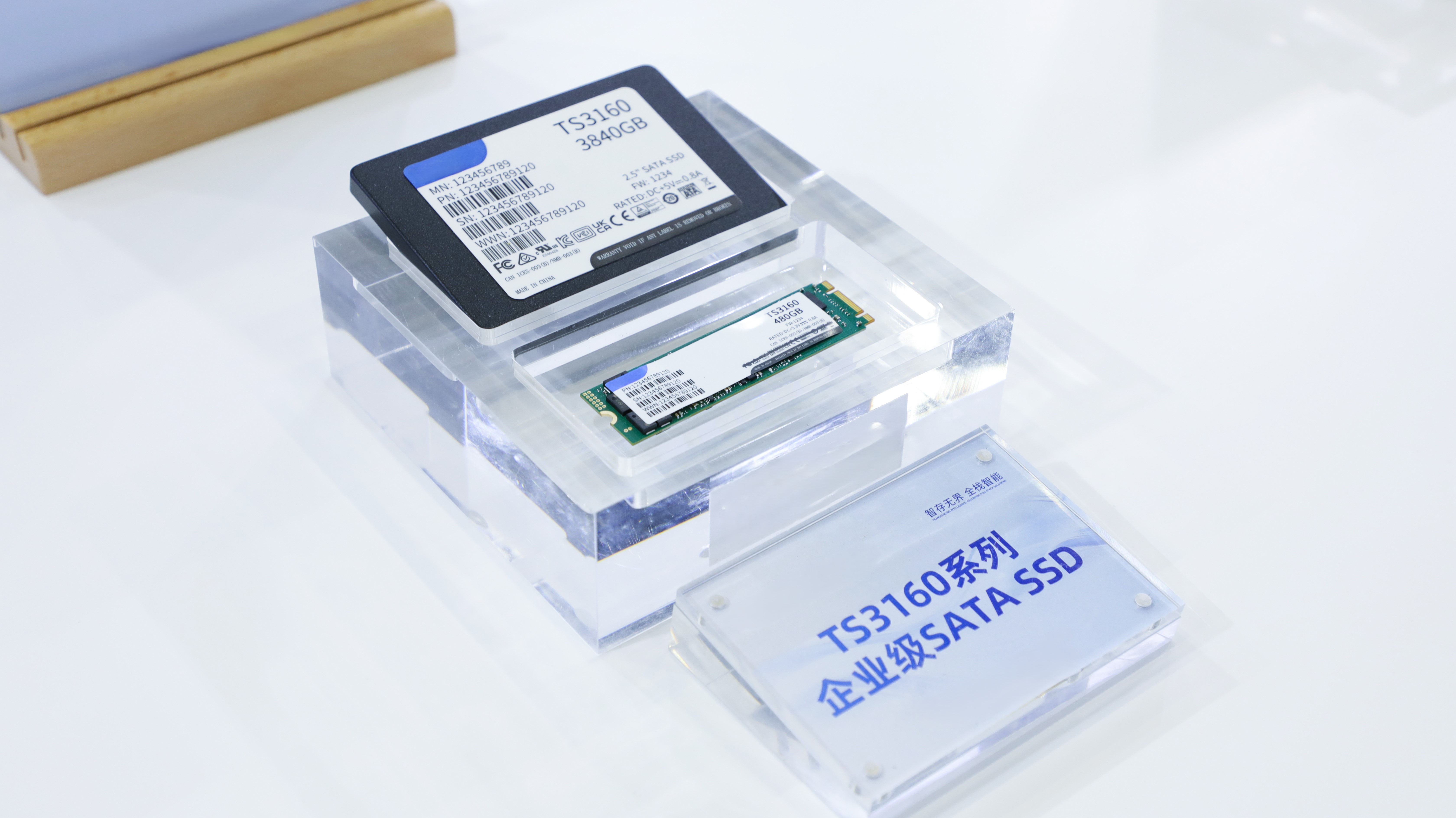 在锡圆半导体展位现场,展示了品牌SATA SSD产品,该SATA启动盘专为云服务器基础架构优化设计,具备安全可靠、性能稳定的特点。