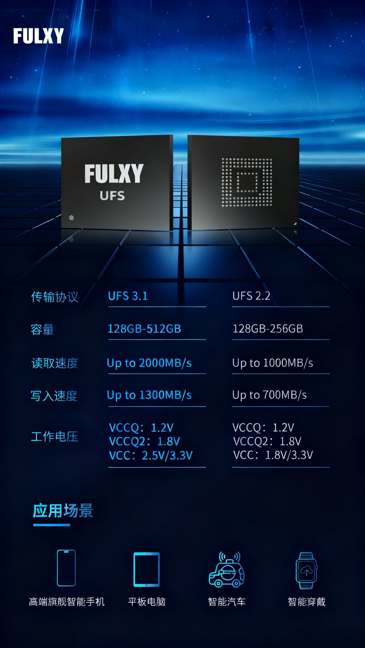 锡圆半导体UFS提供128GB、256GB、512GB多种容量选择,产品厚度设计最大可压缩至1.0mm,提升了与移动设备内部空间的兼容性,广泛适用于高端旗舰智能手机、平板电脑、智能汽车、智能穿戴等场景,有效应对5G时代日益增长的数据处理需求,为用户提供更为智能、高效的移动体验。
